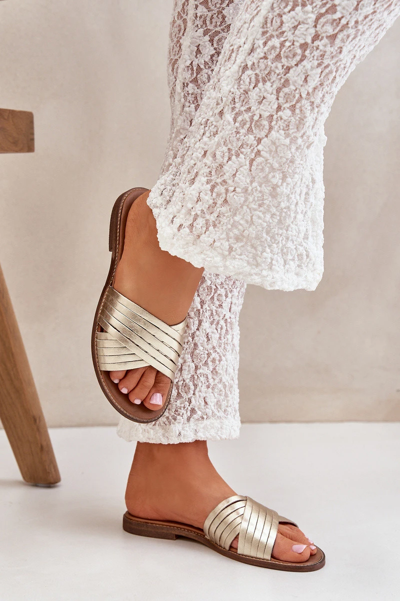 Kožené dámské pantofle Lewski Shoes 3682 zlaté