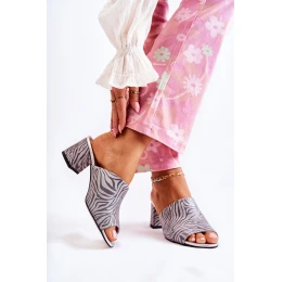 Kožené dámské pantofle na vysokém podpatku Zebra šedá Nessita