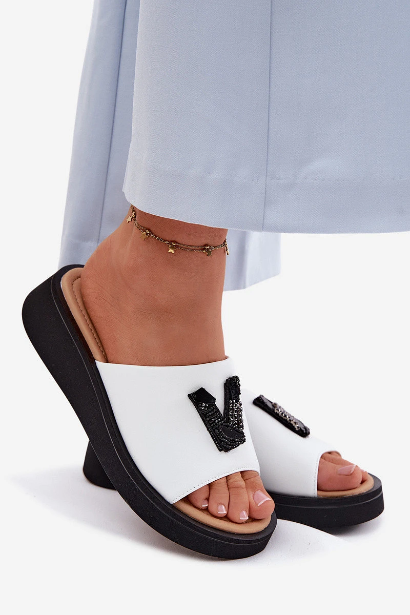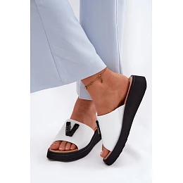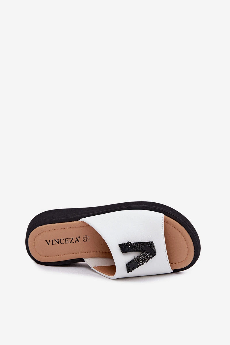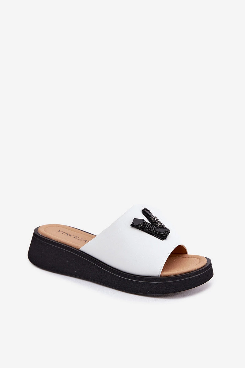 Kožené dámské pantofle s písmenem V na platformě Vinceza 66950 bílé