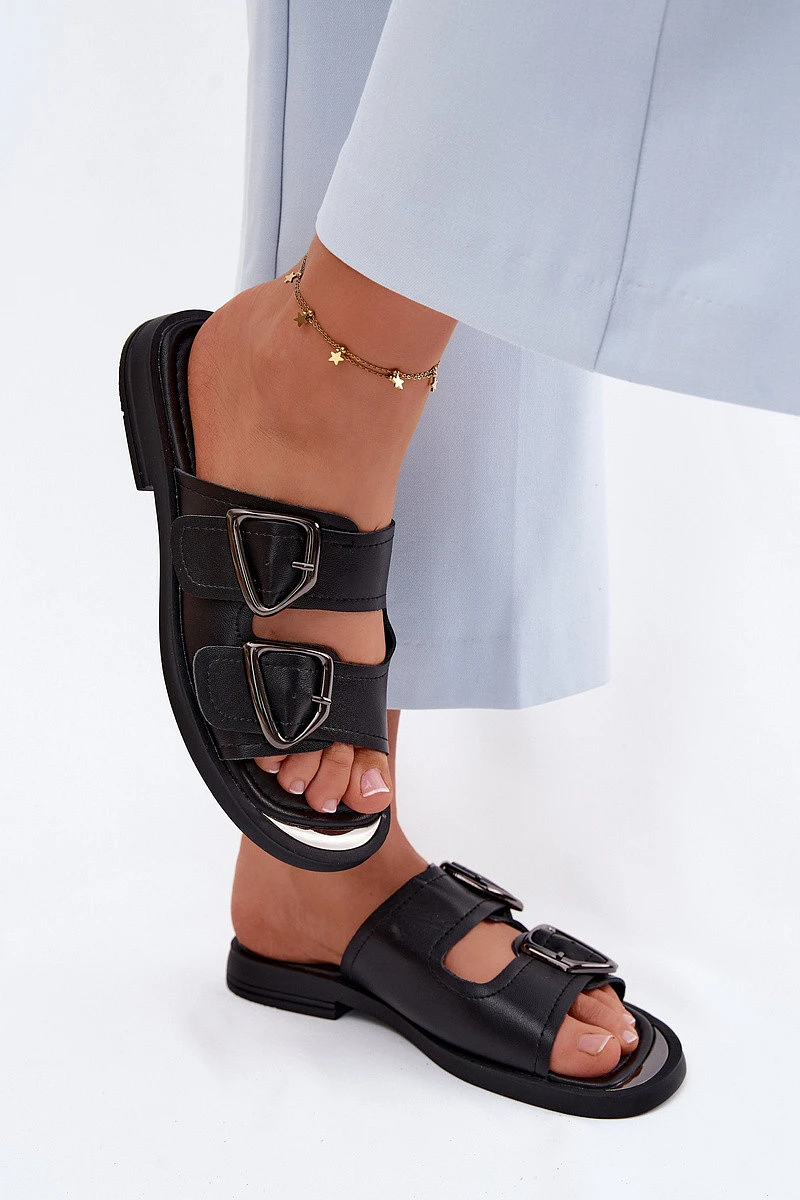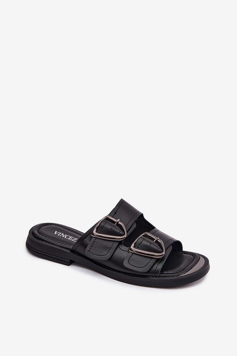 Přidání recenze k Kožené dámské pantofle s přezkami Vinceza 62304 Černé