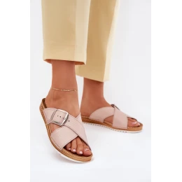 Kožené dámské pantofle s přezkou růžové model 21701900 - Inblu