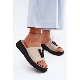 Kožené dámské pantofle s V na platformě béžové model 22125935 - VINCEZA