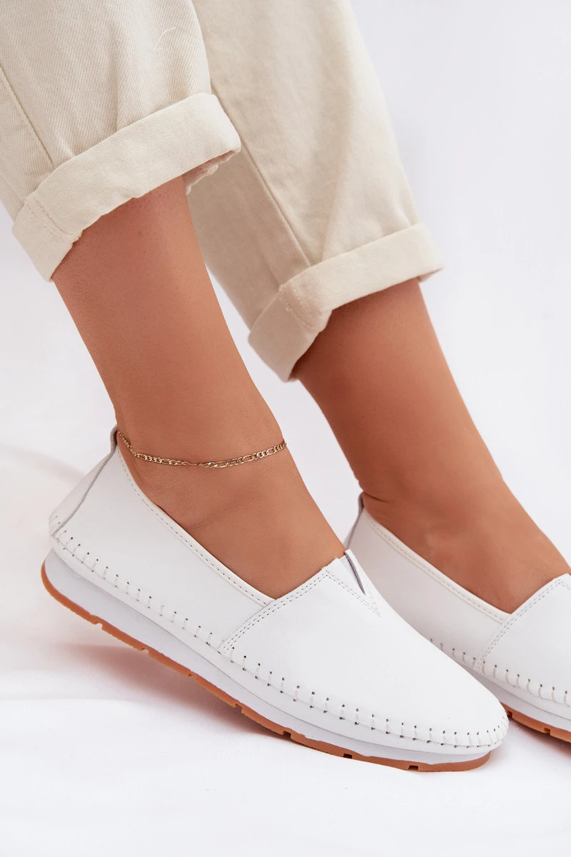 Kožené dámské polobotky model 22013910 Bílé - S.Barski