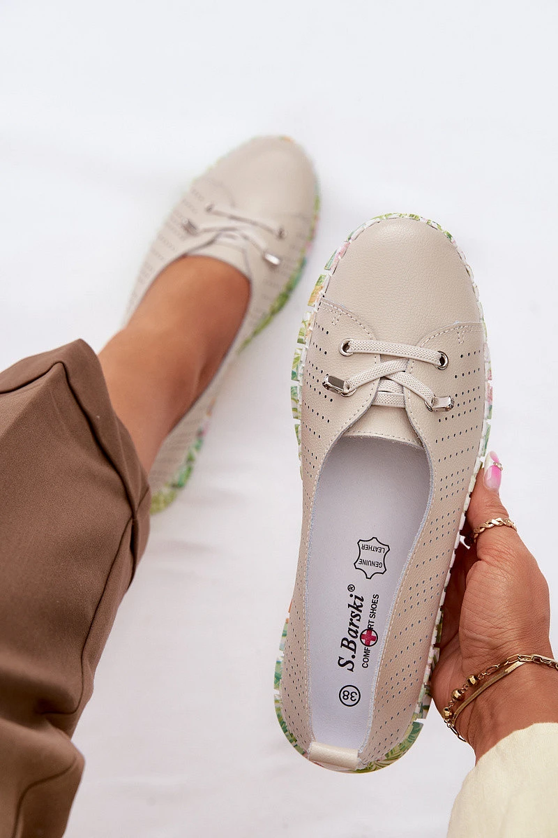 Kožené dámské polobotky model 22100343 Béžové - S.Barski