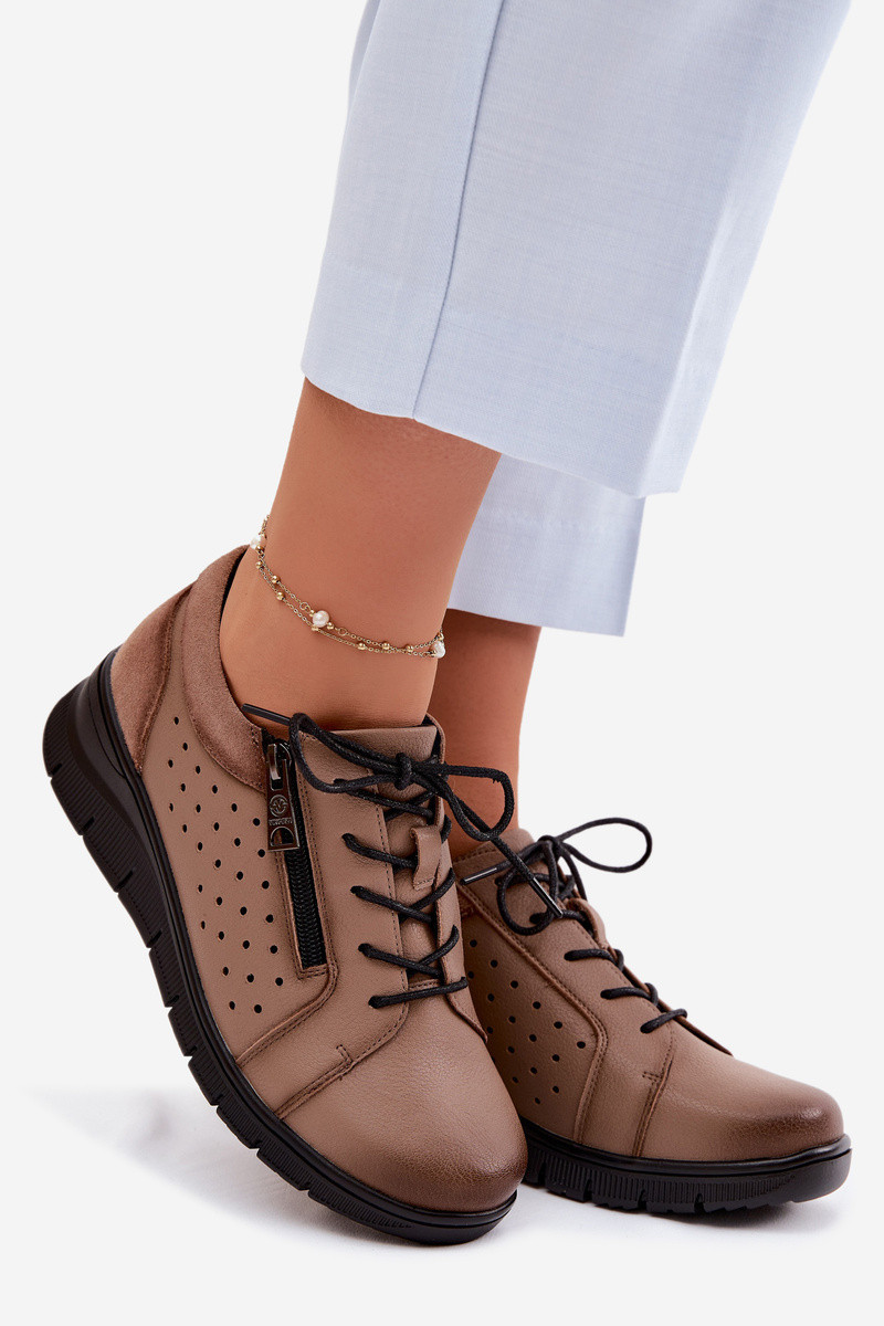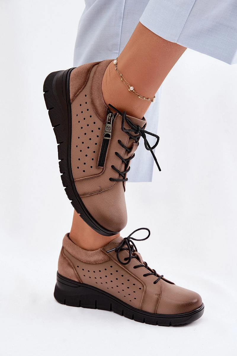 Kožené dámské polobotky na platformě model 22100867 Béžové - VINCEZA