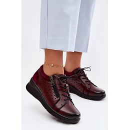Kožené dámské polobotky na platformě model 22100874 bordó - VINCEZA