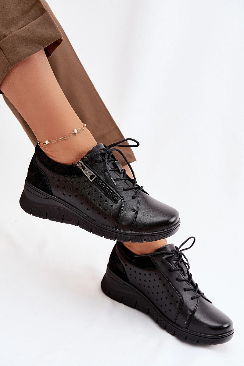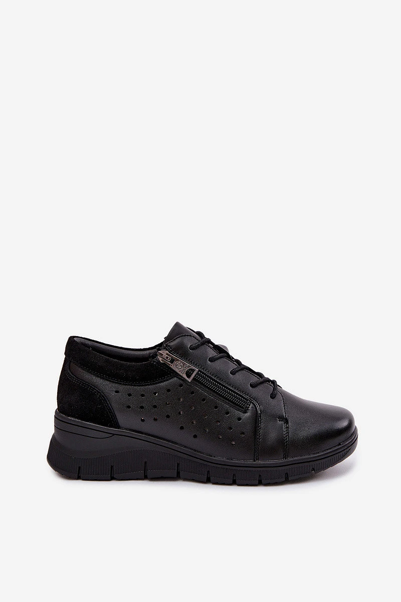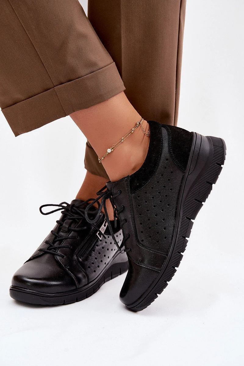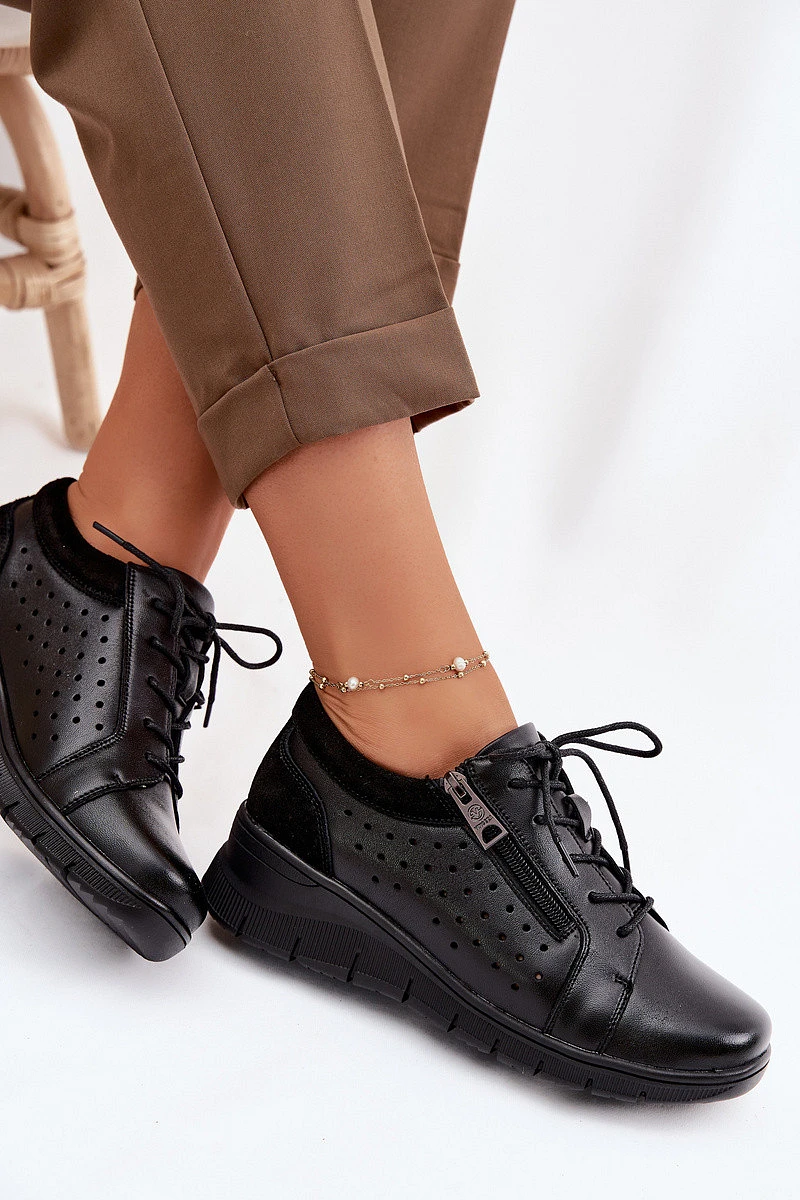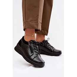 Kožené dámské polobotky na platformě model 22100881 Černé - VINCEZA