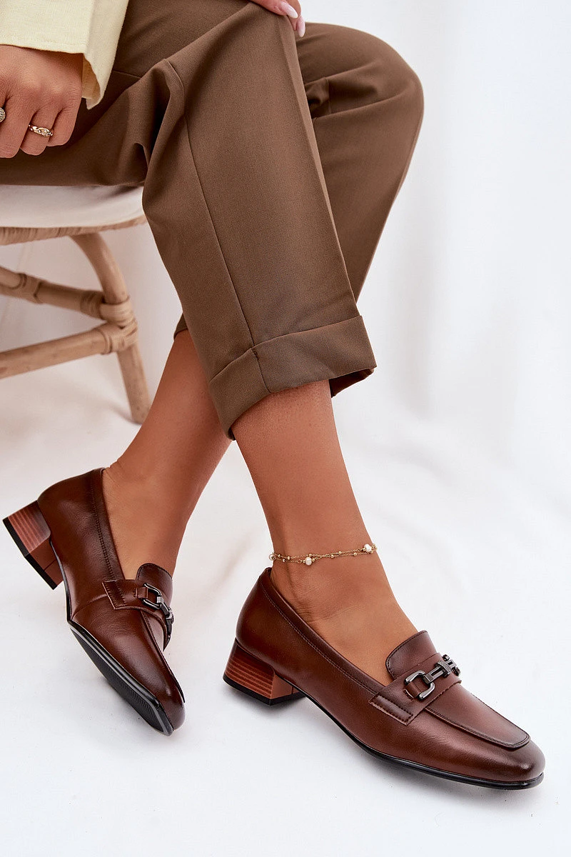 Přidání recenze k Kožené dámské polobotky na podpatku s ozdobou model 22069498 hnědé - VINCEZA