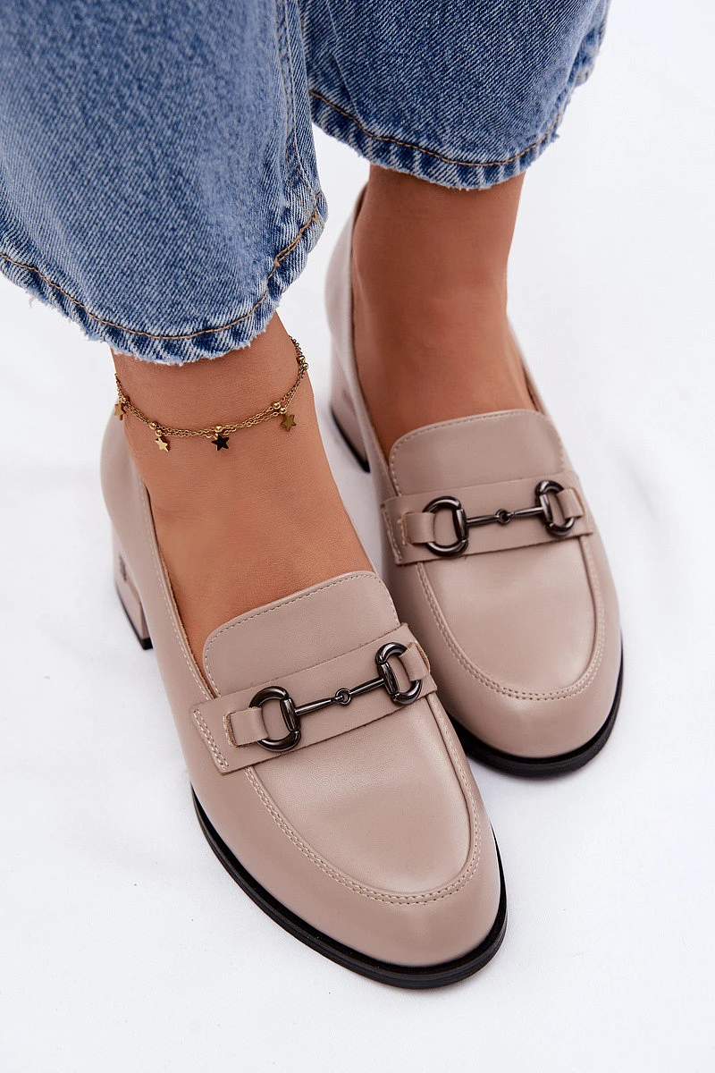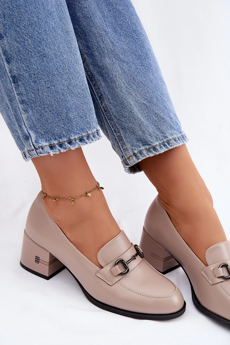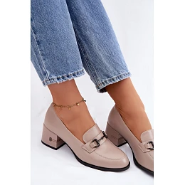 Kožené dámské polobotky na podpatku Vinceza 18116 Béžové