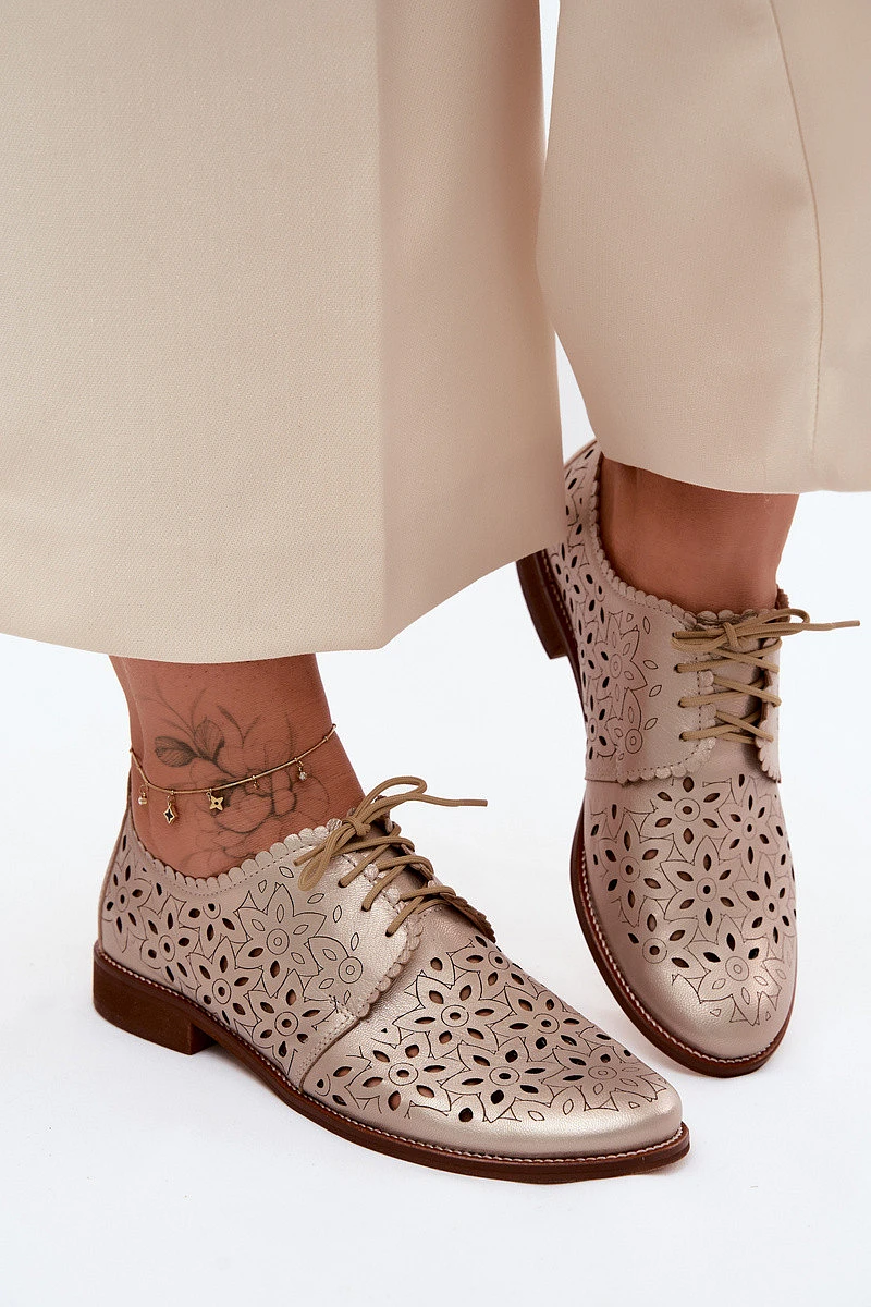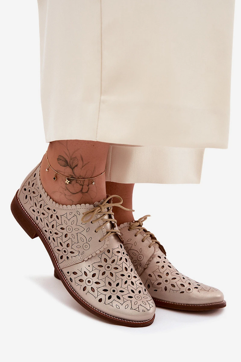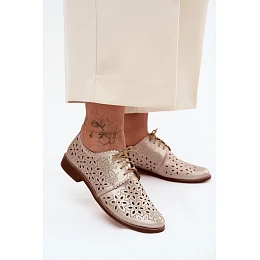Kožené dámské polobotky s otvory na nízkém podpatku Zazoo 4156 Zlaté