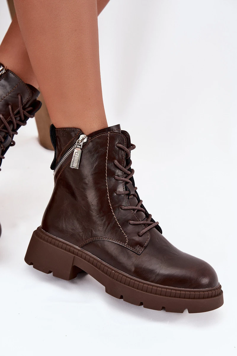 Kožené dámské pracovní kozačky s vyhříváním Big Star SS274453 hnědé