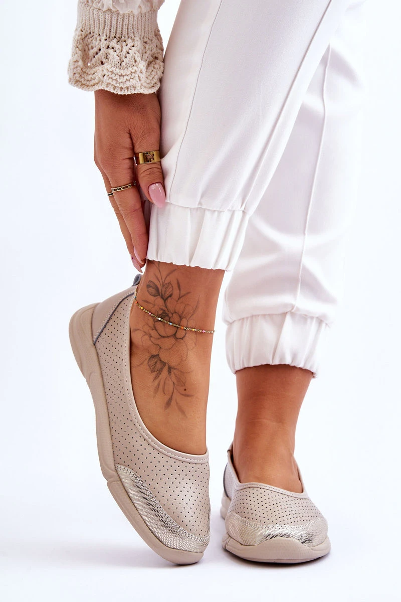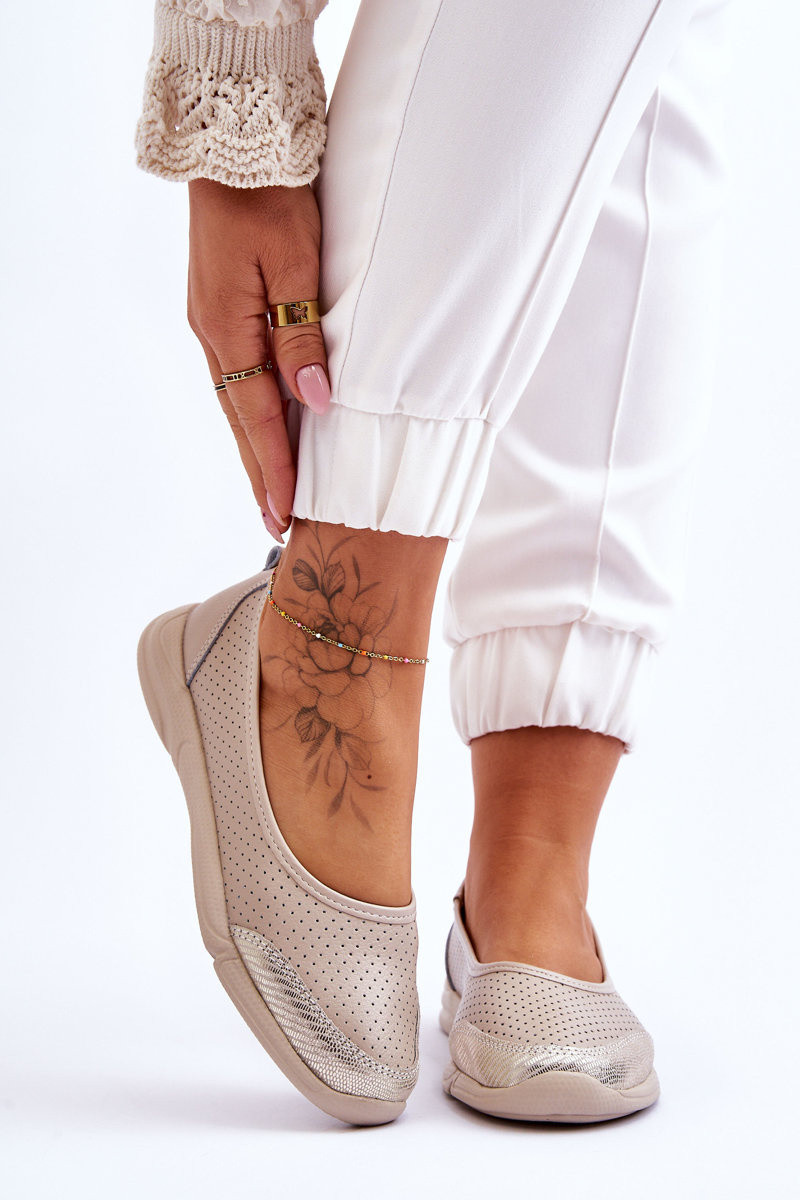 Kožené dámské prolamované baleríny Béžová Lucy