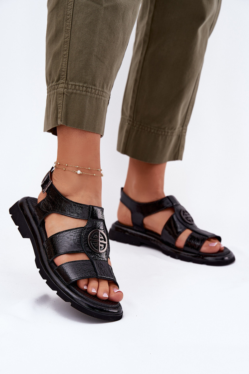 Kožené dámské sandály lakované s ozdobným detailem Artiker 56C0691 černé
