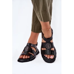 Kožené dámské sandály lakované s ozdobným detailem Artiker 56C0691 černé
