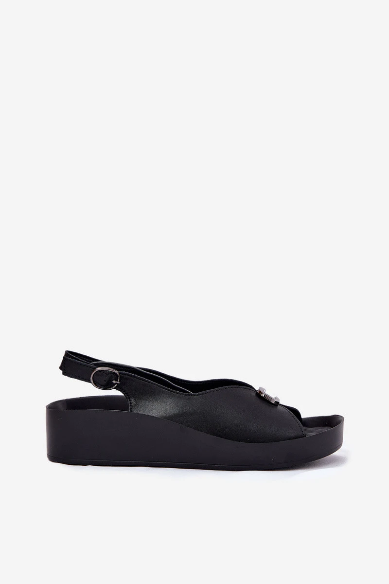 Kožené Dámské Sandály Na Klínu A Platformě S.Barski KV51-020 Černé