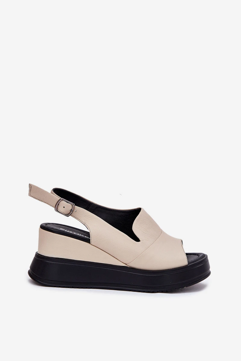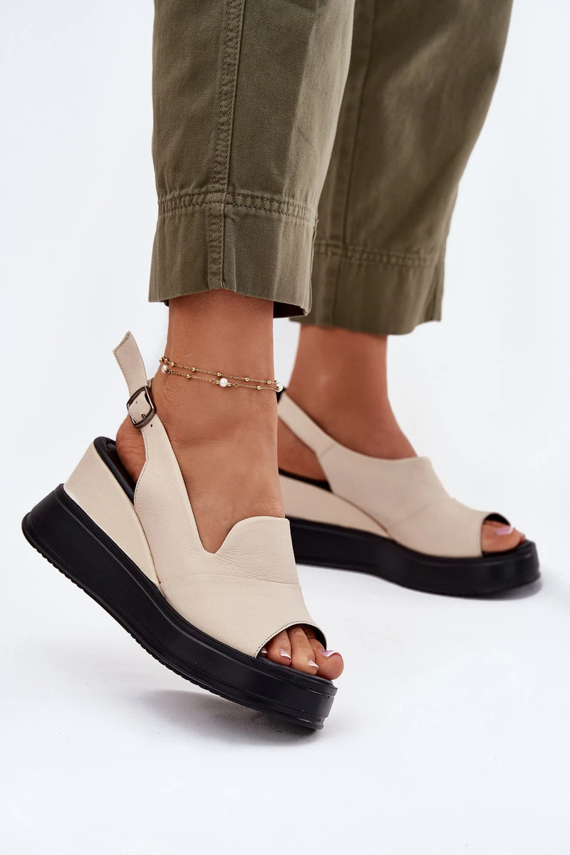 Kožené dámské sandály na klínu model 21697572 béžové - Artiker