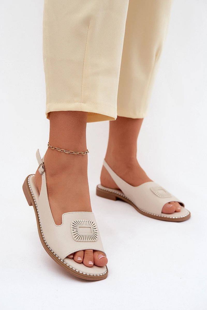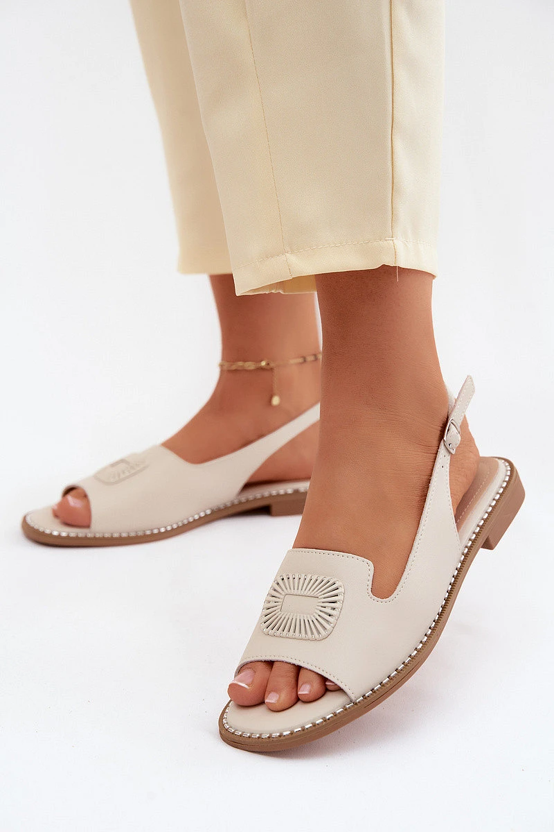 Kožené dámské sandály na nízkém podpatku S.Barski KV61-6076 béžové