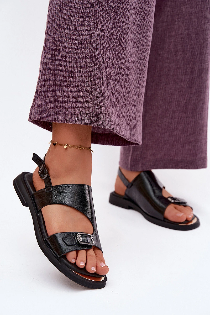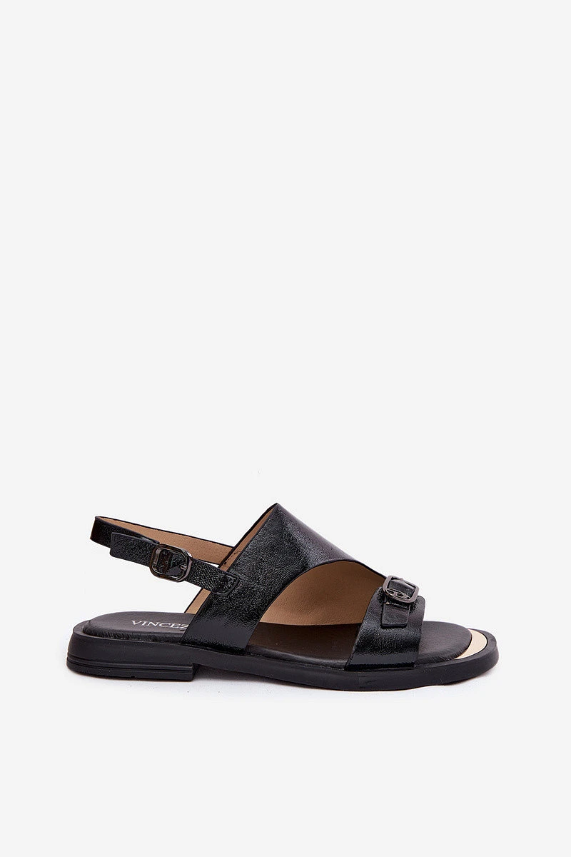 Kožené dámské sandály na nízkém podpatku Vinceza 86434 Černé