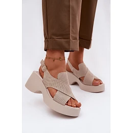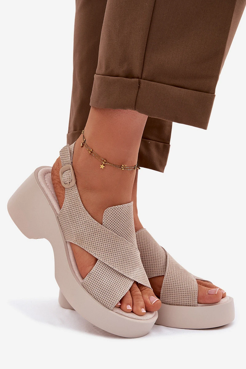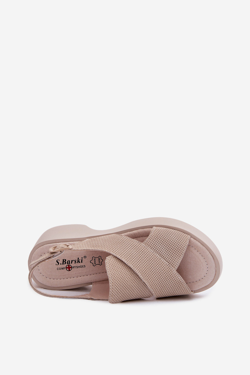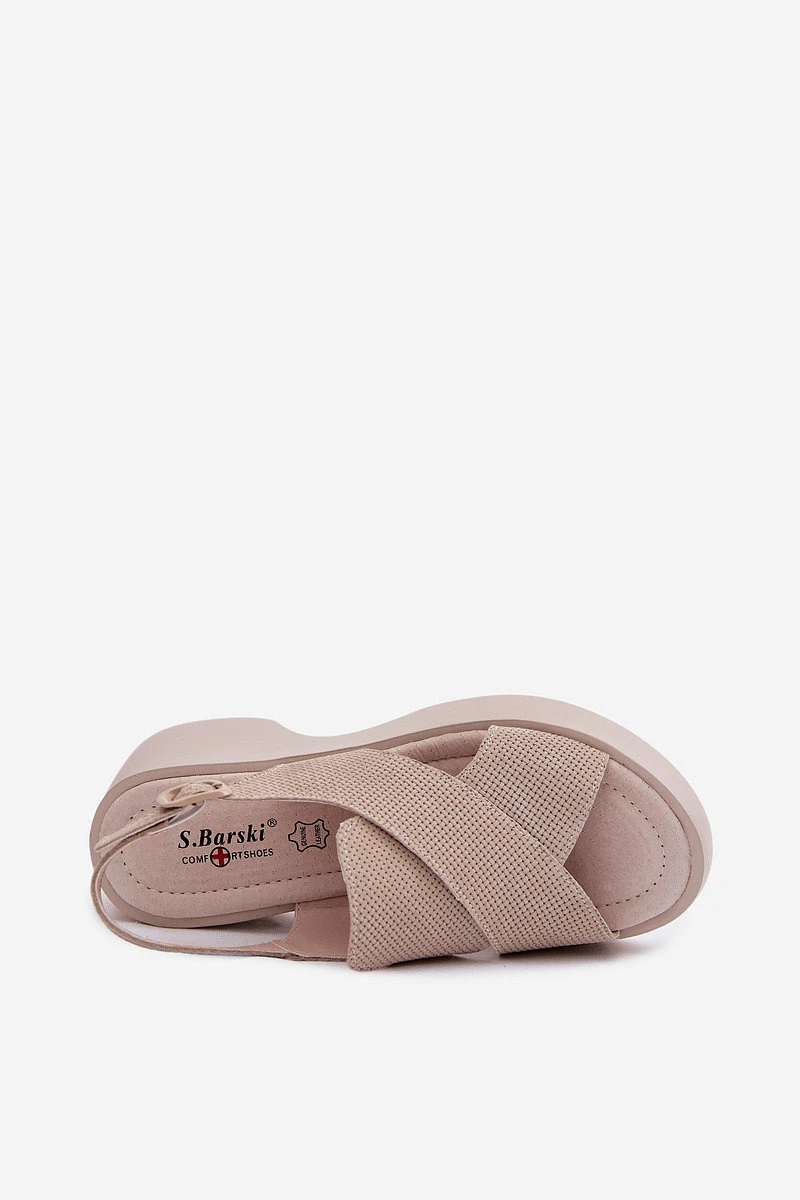 Kožené dámské sandály na platformě model 22100356 Béžové - S.Barski