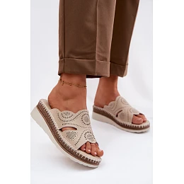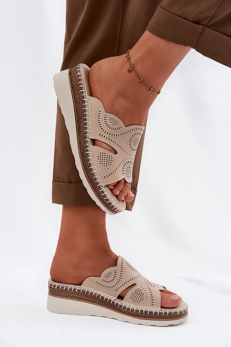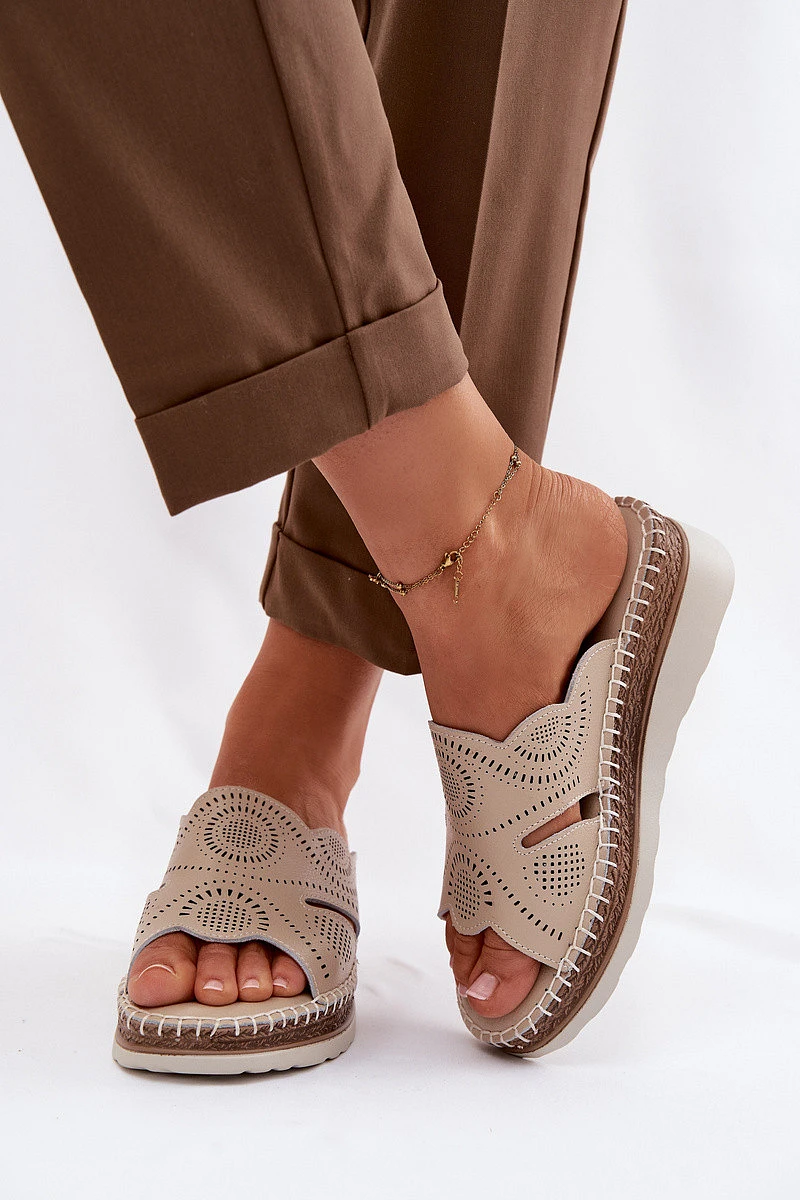 Kožené dámské sandály na platformě model 22101277 béžové - S.Barski
