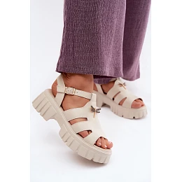 Kožené dámské sandály na platformě s Béžové model 22126015 - VINCEZA