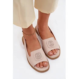 Kožené dámské sandály na ploché podrážce s ozdobou S.Barski KV61-6018 Nude