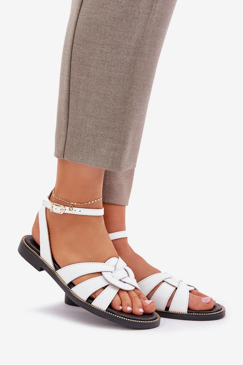 Kožené Dámské Sandály Na Plochém Podpatku Bílé Zazoo model 21682210 - Boto