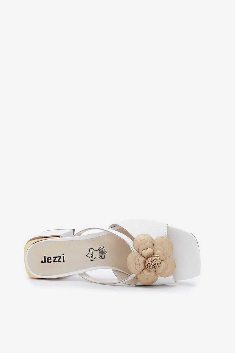 Přidání recenze k Kožené dámské sandály na podpatku s květinou bílé model 22140994 - Boto