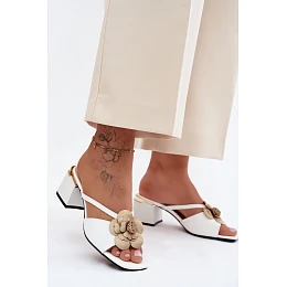 Kožené dámské sandály na podpatku s květinou bílé model 22140994 - Boto