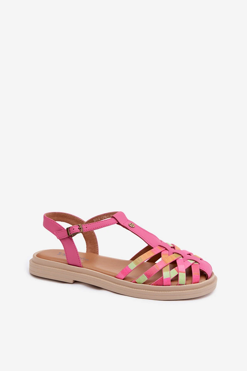 Kožené dámské sandály Ploché S Pásky model 22133494 Růžové - Maciejka