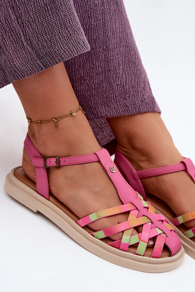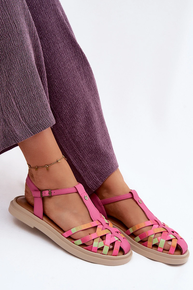 Přidání recenze k Kožené dámské sandály Ploché S Pásky model 22133494 Růžové - Maciejka