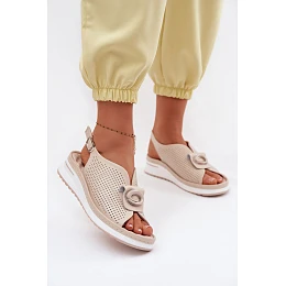 Kožené dámské sandály s ozdobným detailem Béžové model 22094980 - EVENTO