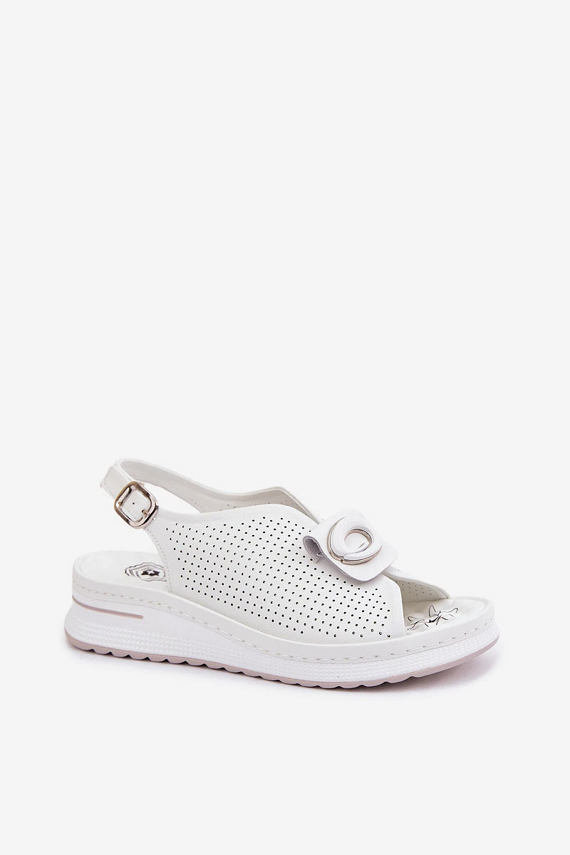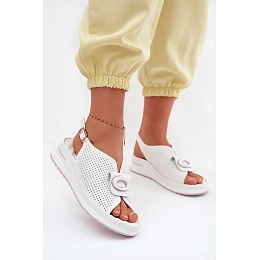 Kožené dámské sandály s ozdobným detailem bílé Deliva