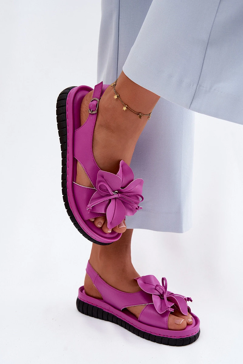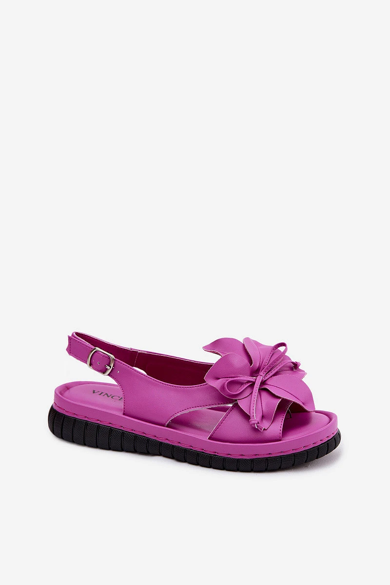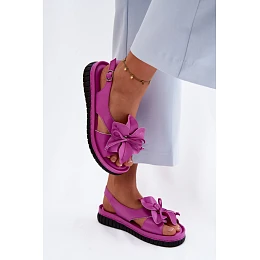 Kožené dámské sandály s ozdobným květinovým Vinceza 66917 Fuchsiová