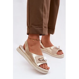 Kožené dámské sandály s ozdobou D&A model 22100317 Zlaté - S.Barski
