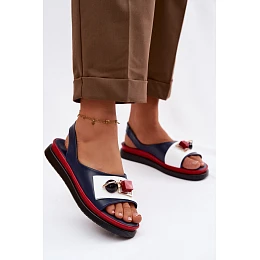 Kožené dámské sandály s ozdobou D&A model 22101325 tmavě modré - S.Barski
