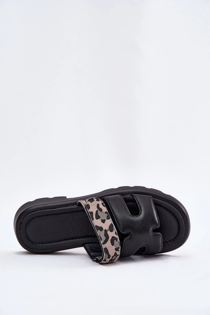 Kožené Dámské Sandály S Páskem Leopard Vinceza 66769 Černé