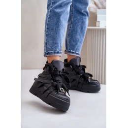 Kožené Dámské Sneakersy Na Masivní Platformě model 21673898 Černé - CheBello