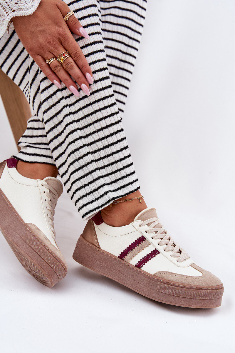 Kožené dámské sneakersy na platformě Zazoo N1234 béžovo-červené