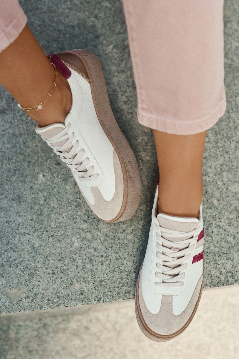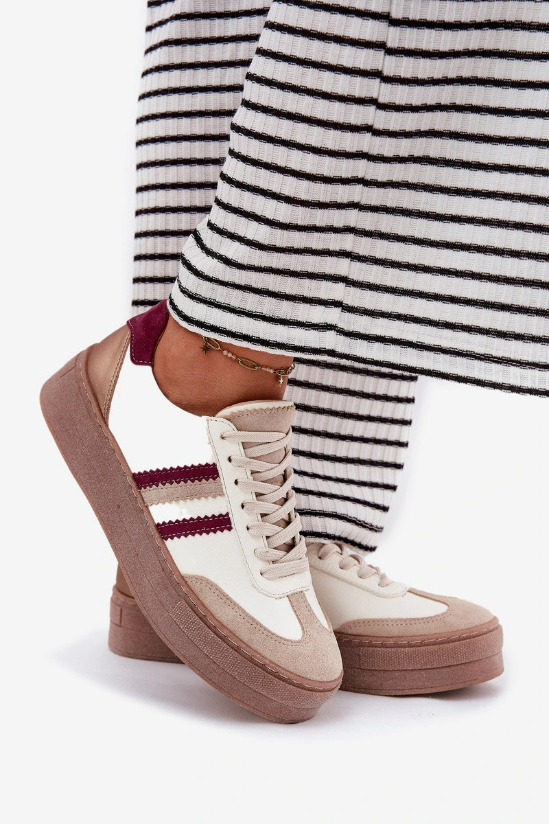 Přidání recenze k Kožené dámské sneakersy na platformě Zazoo N1234 béžovo-červené