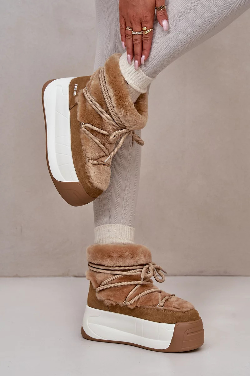 Kožené Dámské Sněhule Na Silné Podešvi S Kožešinou Big Star Hnědé