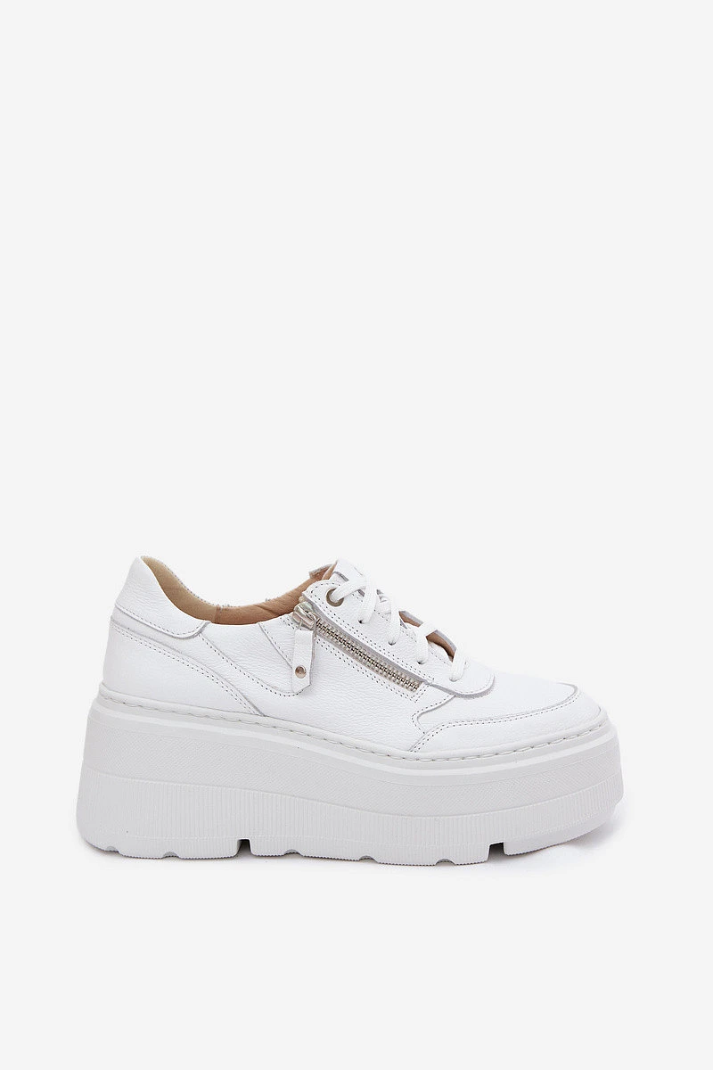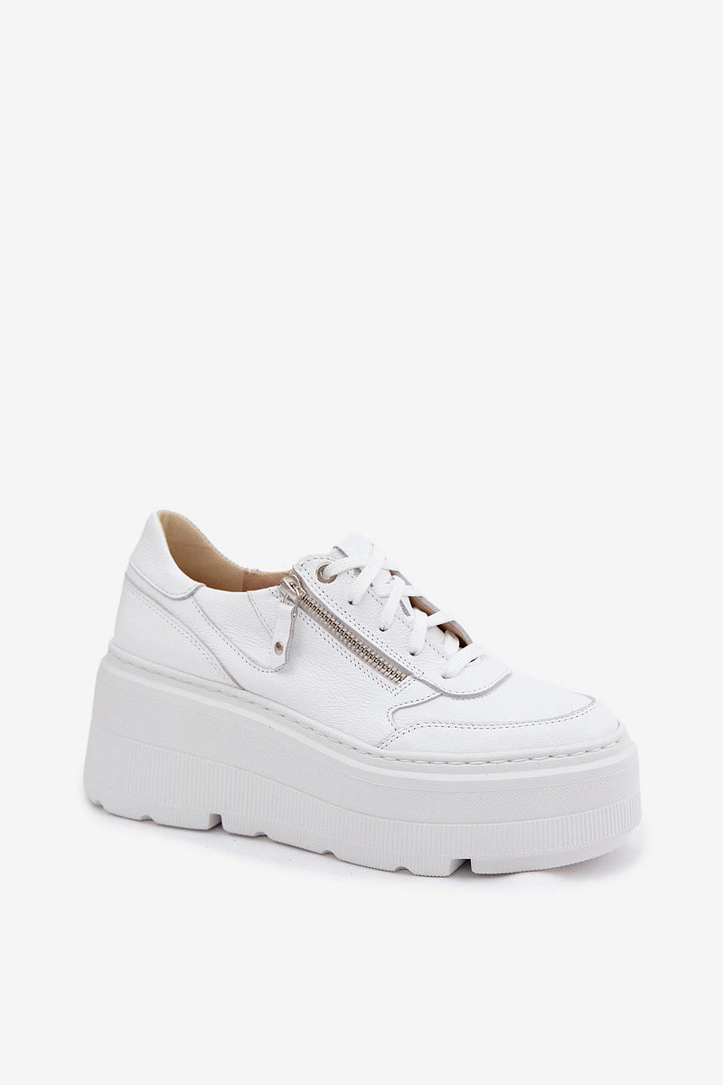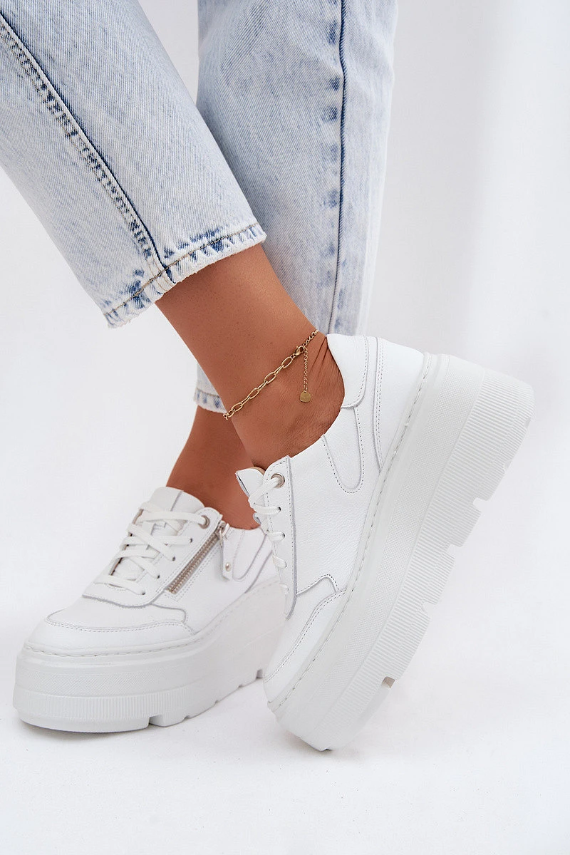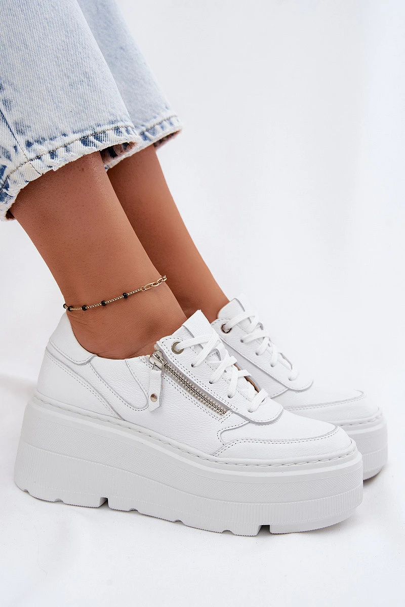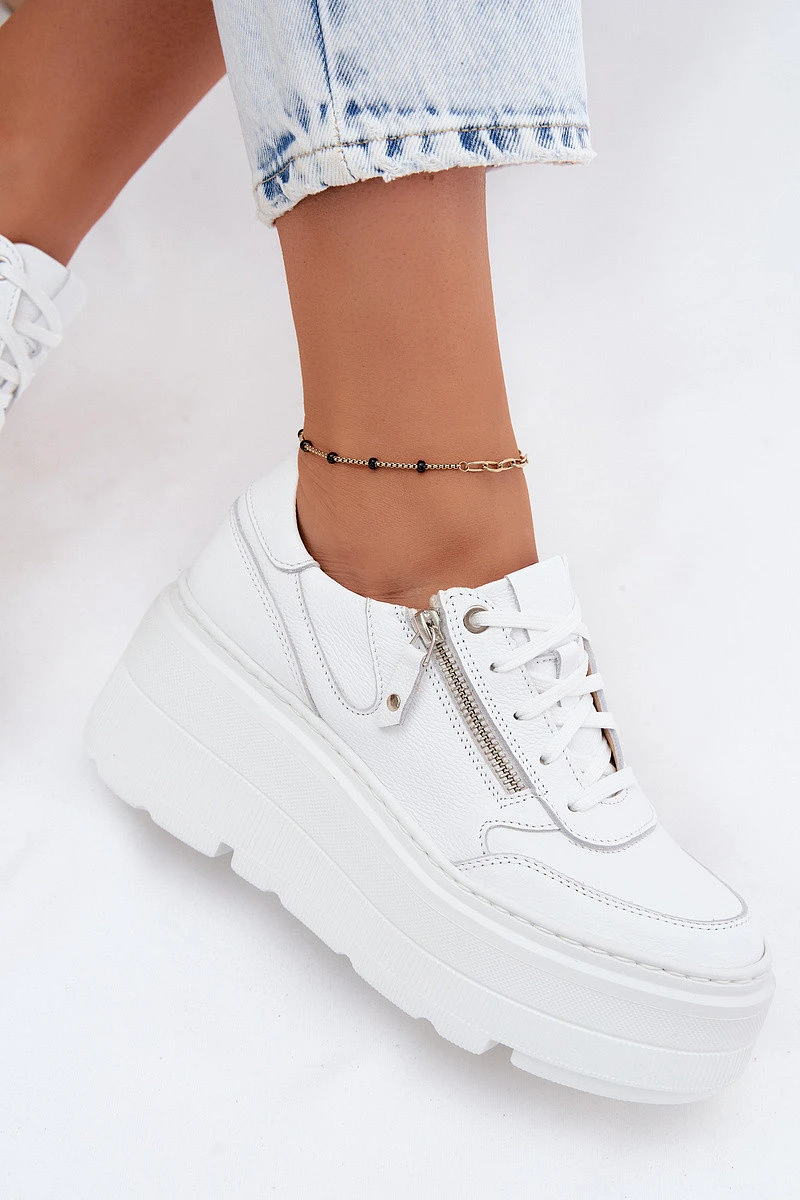 Kožené dámské tenisky na masivní platformě model 22130428 Bílé - Zazoo