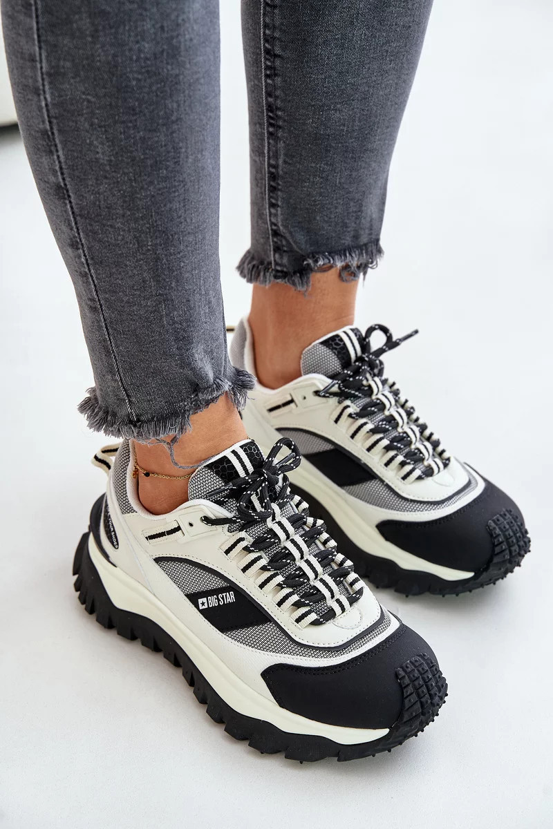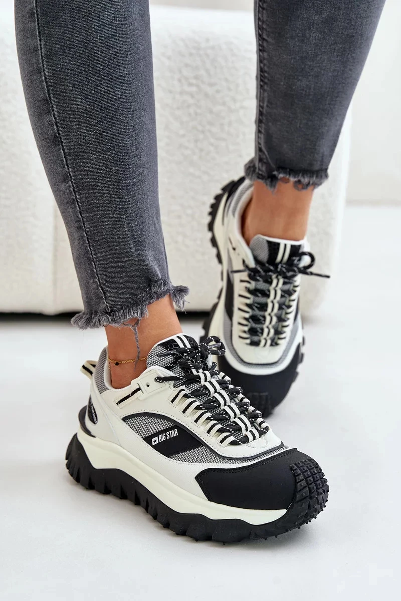 Kožené Dámské Tenisky Na Platformě Big Star HI-POLY SYSTEM Bílo-Černé