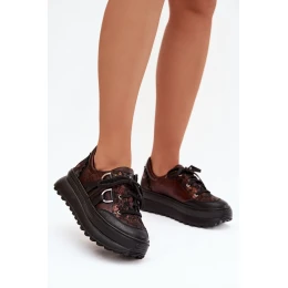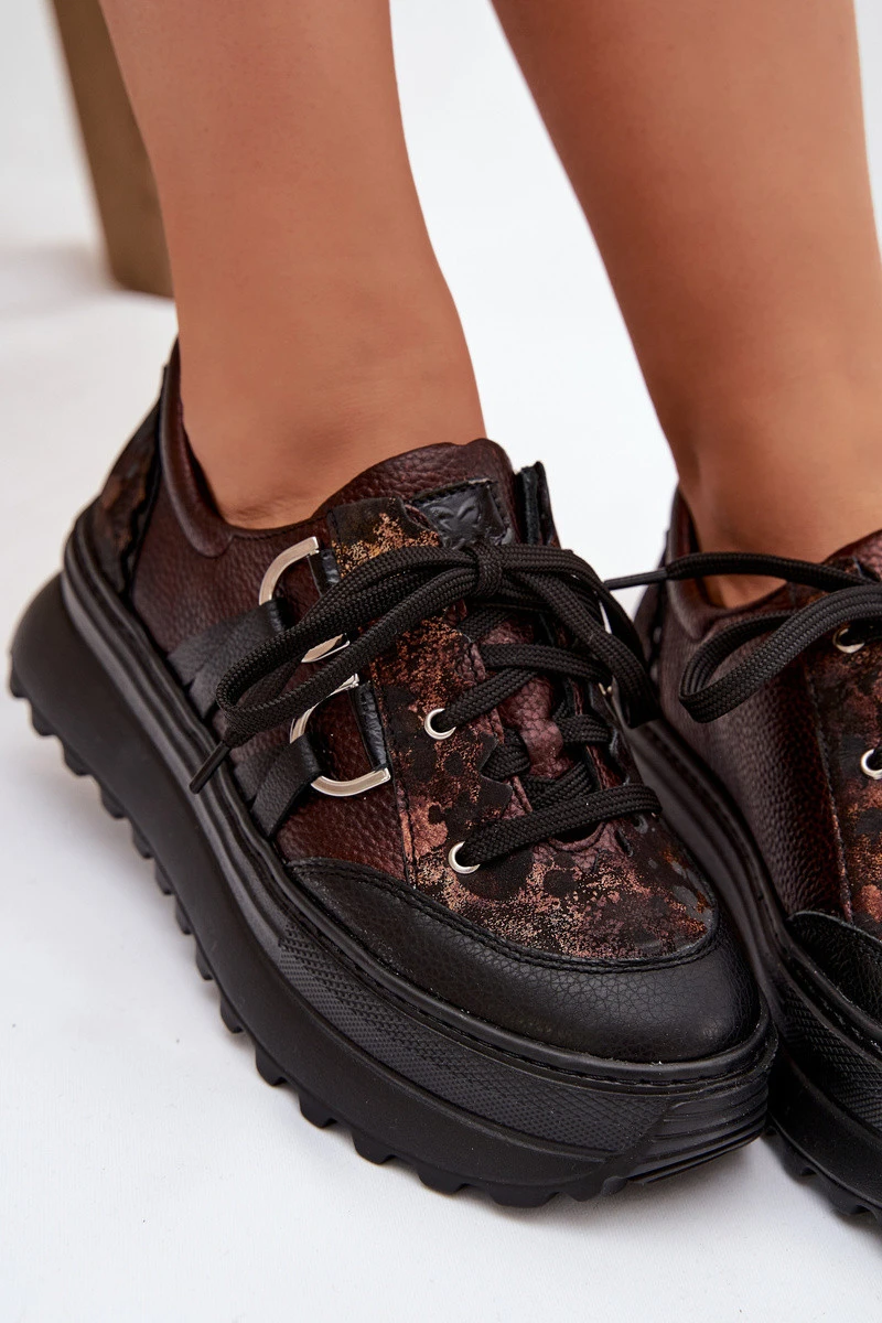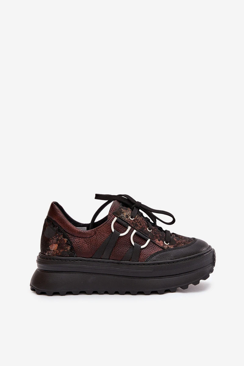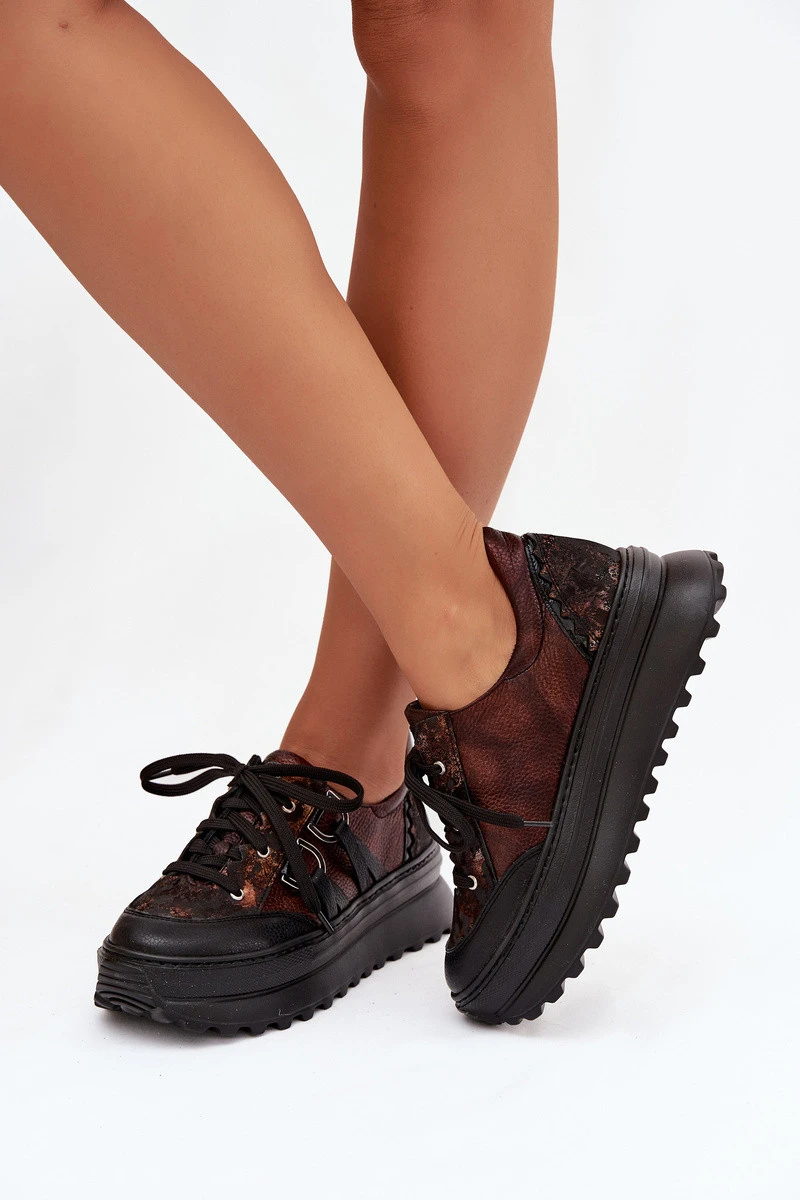 Kožené dámské tenisky na platformě model 21821683 čokoládové - Maciejka