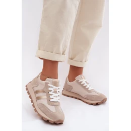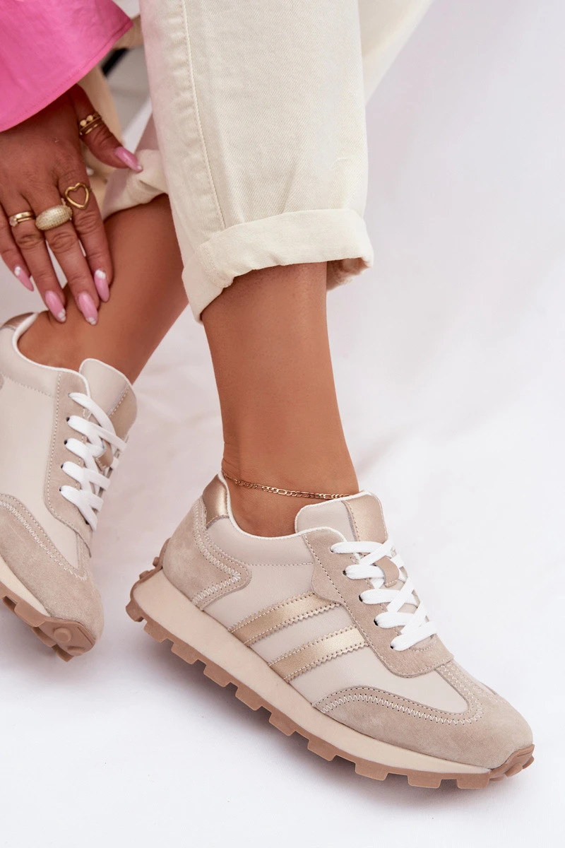 Kožené dámské tenisky na platformě model 22013931 Béžové - S.Barski