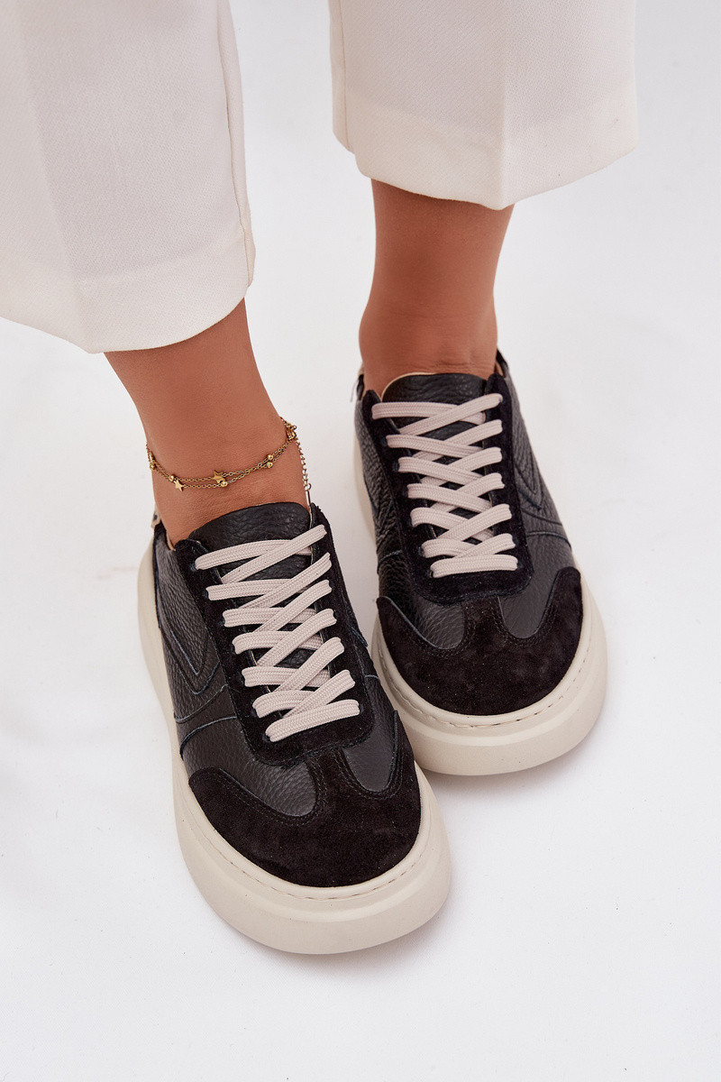 Kožené dámské tenisky na platformě Panterka Zazoo N1263 Černé