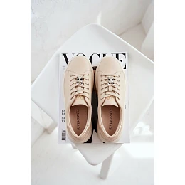 Kožené dámské tenisky na platformě s přezkou model 22073025 Béžové - VINCEZA