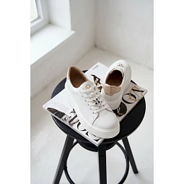 Kožené dámské tenisky na platformě s přezkou model 22073031 Bílé - VINCEZA