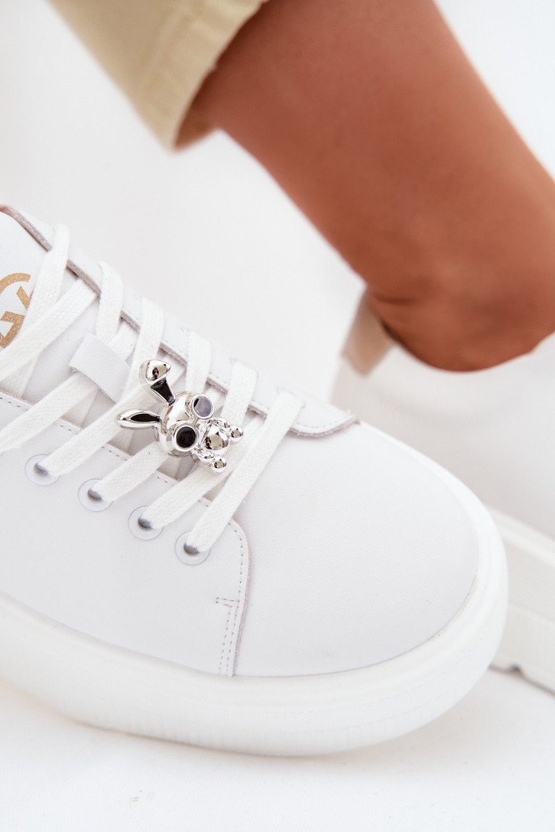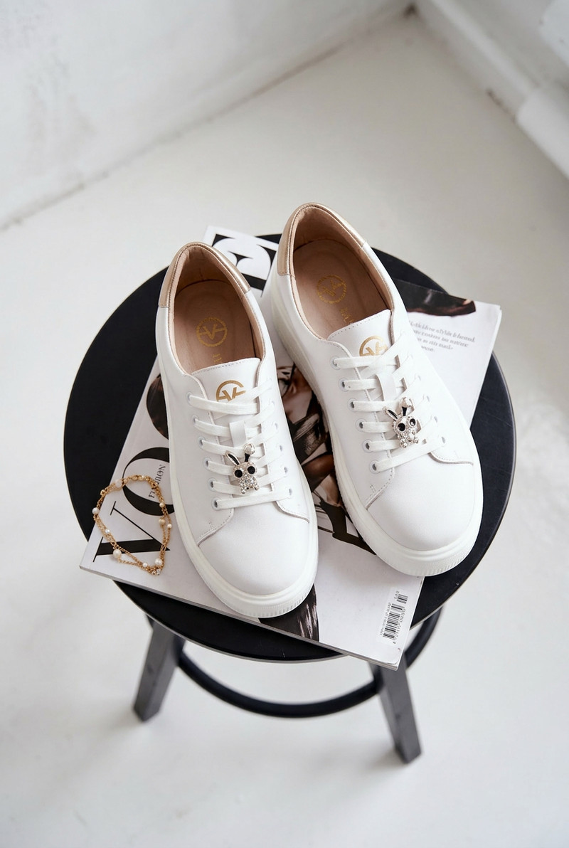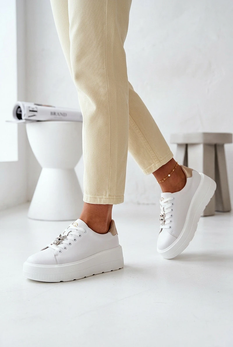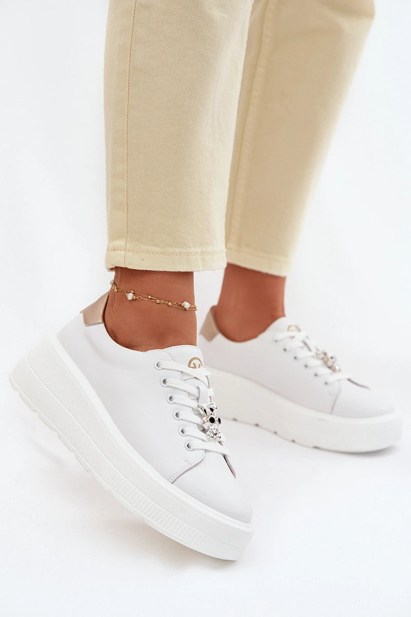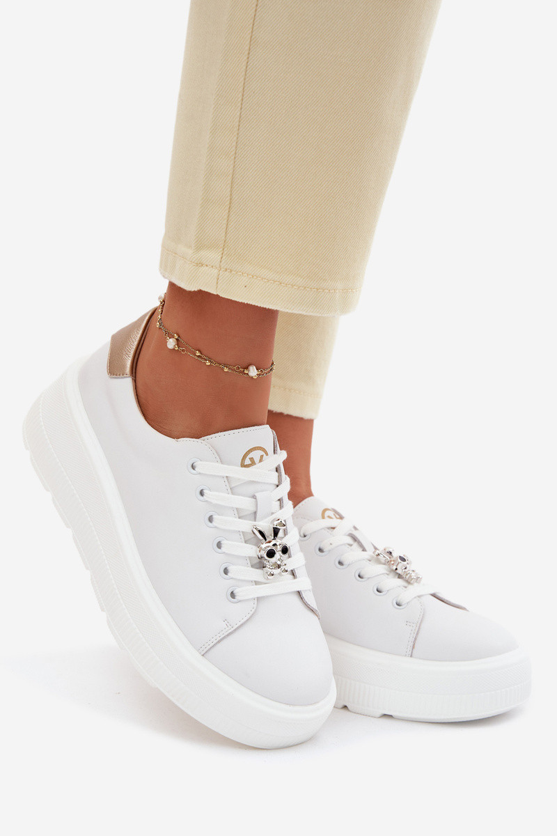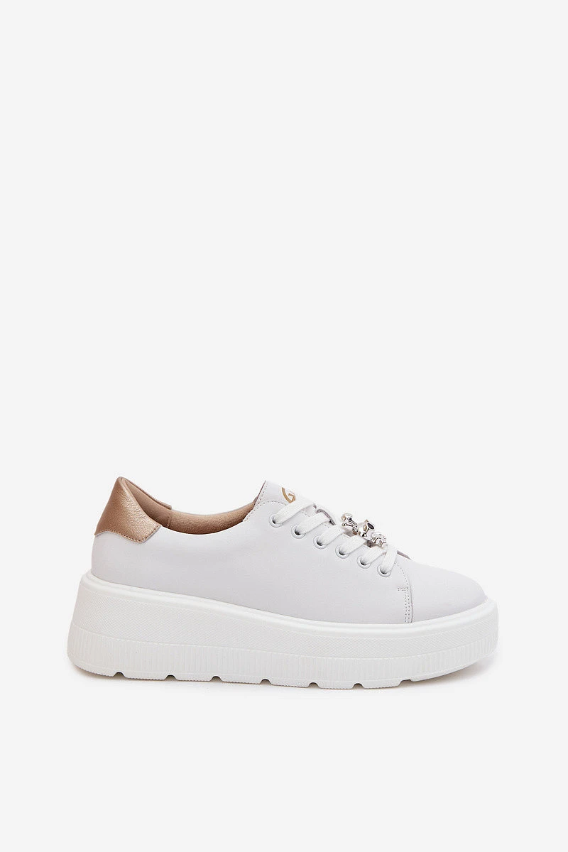 Kožené dámské tenisky na platformě s přezkou Vinceza 39973 Bílé