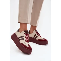 Kožené dámské tenisky na platformě Zazoo 3775 béžovo-bordó